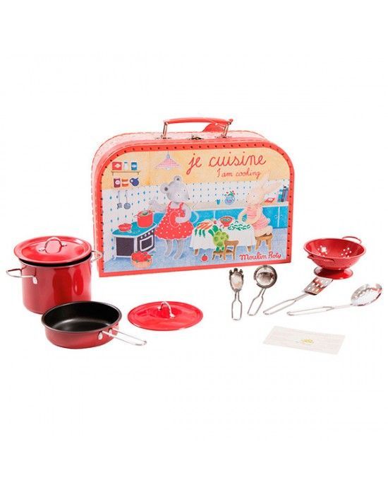 Este completo set de utensilios de cocina de la colección La Grande Famille de Moulin Roty hará que tu peque se lo pase en grande jugando a cocinar con sus amiguitos. ¡Se divertirán mucho! Contenido: Olla, sartén, colador, cucharón, espumadera y otros. Edad: a partir de 3 años. Marca: Moulin Roty.