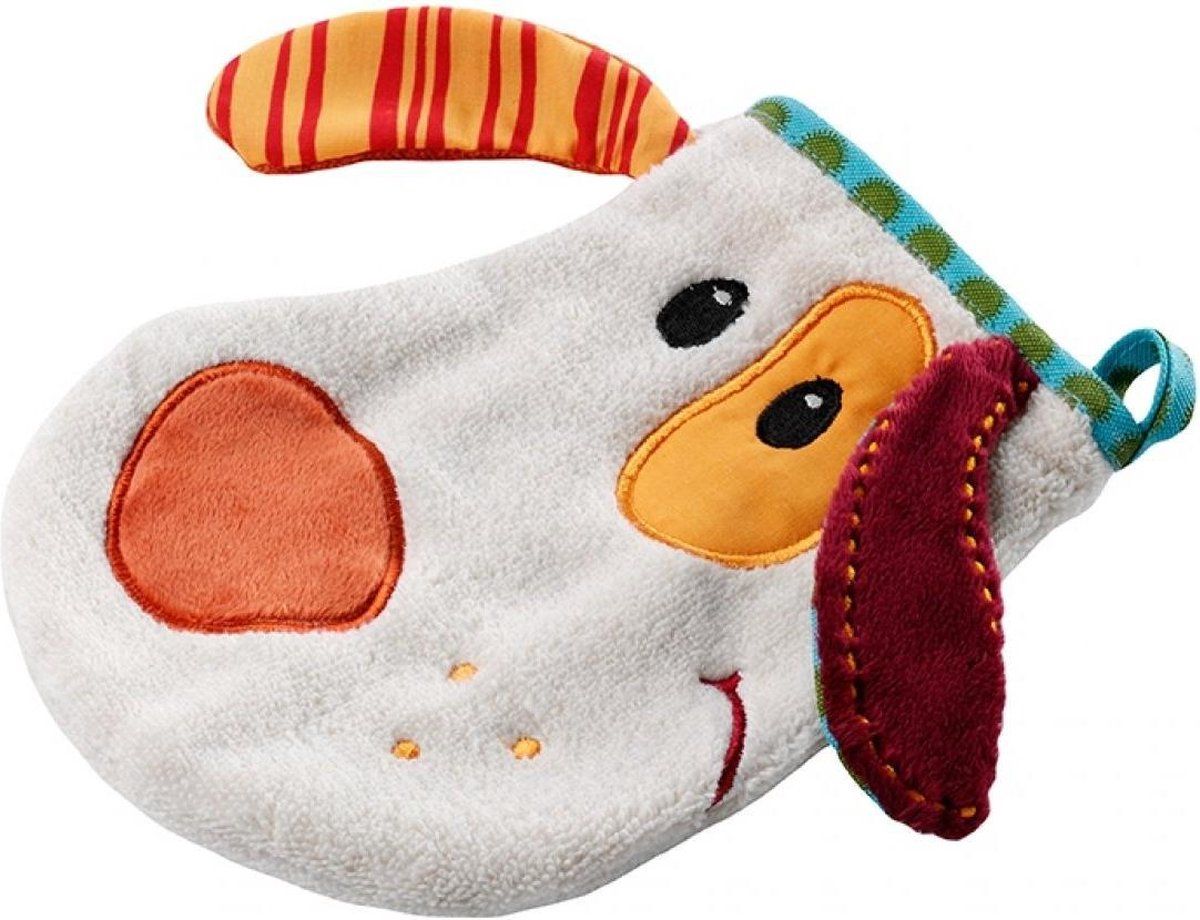 Jef quiere bañarse contigo. Viene dentro de una bonita caja de cartón, encontrarás una capa de baño muy divertida con sus orejas de perro y un pequeño guante de baño con el aspecto de tu perrito favorito.